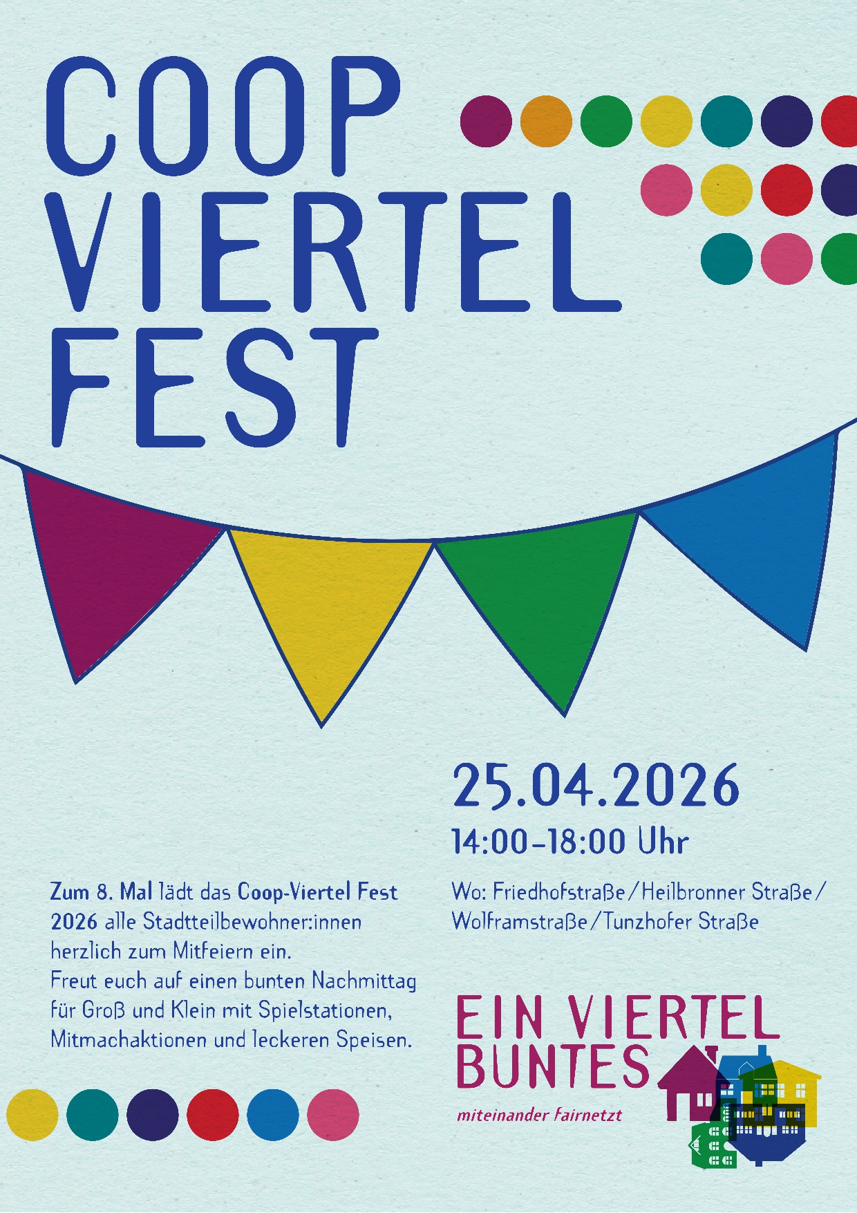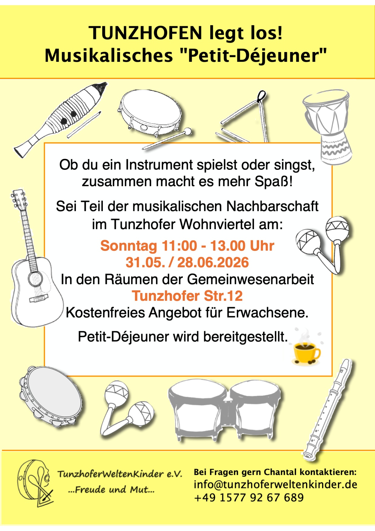 Unsere Spielstation "Musik für klein und groß" wird in der Tunzhoferstr. 12 sein.